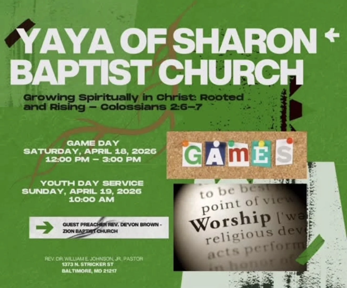 Join the Youth and Young Adults of Sharon for a fun-filled day of games and fun and come back on Sunday for 10a service.